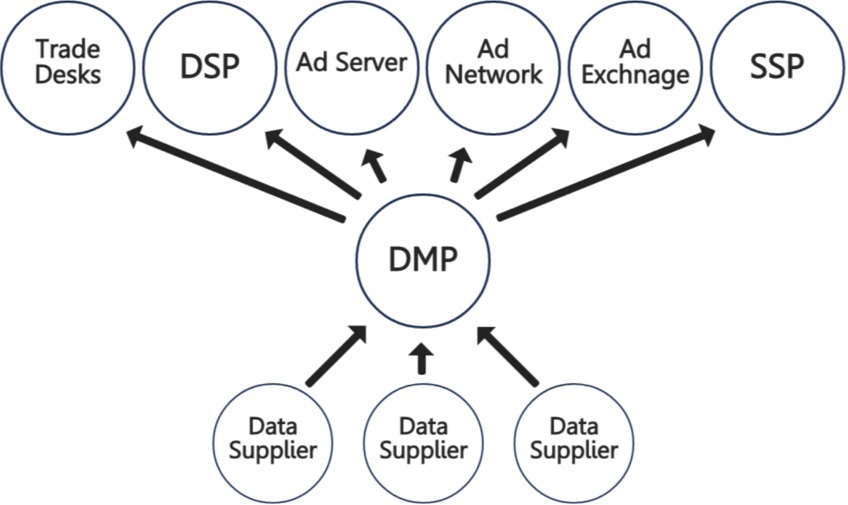 Un DMP o Data Management Platform es un «Data Warehouse» que a través de la integración de diferentes «Bases de Datos» pone a disposición de los distintos Partners (anunciantes, medios, redes, y otras empresas tecnológicas) la información que recoge, los cuales utilizan dichos «paquetes de información» para gestionar cookies IDs, para definir grupos/segmentos de audiencia a los que dirigirse e impactar, y para llevar a cabo la optimización del rendimiento de Campañas y Programas